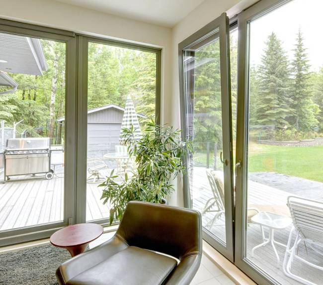 Modern glass room with panoramic aluminium windows and roof, offering stunning views and abundant natural light