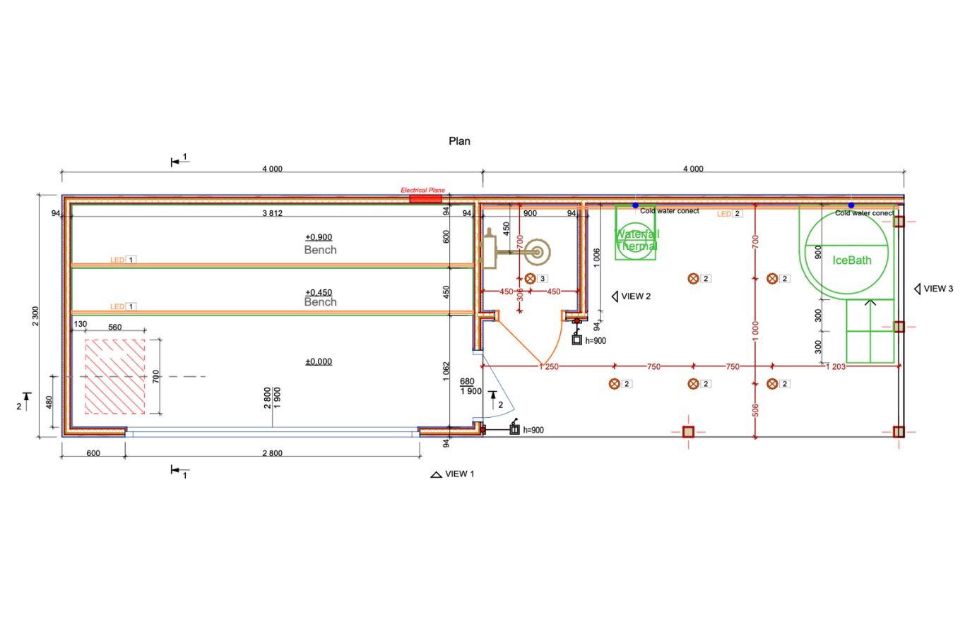 As manufacturers we can expand, adjust and customize your sauna in any direction, adding terraces, covered canopies, shower areas, changing rooms, bar zones, BBQ setups, relaxation spaces or storage modules, creating the perfect layout for your property and the way you live. For a complete wellness experience you can also pair your sauna with one of our premium ice baths for contrast therapy and deeper recovery.