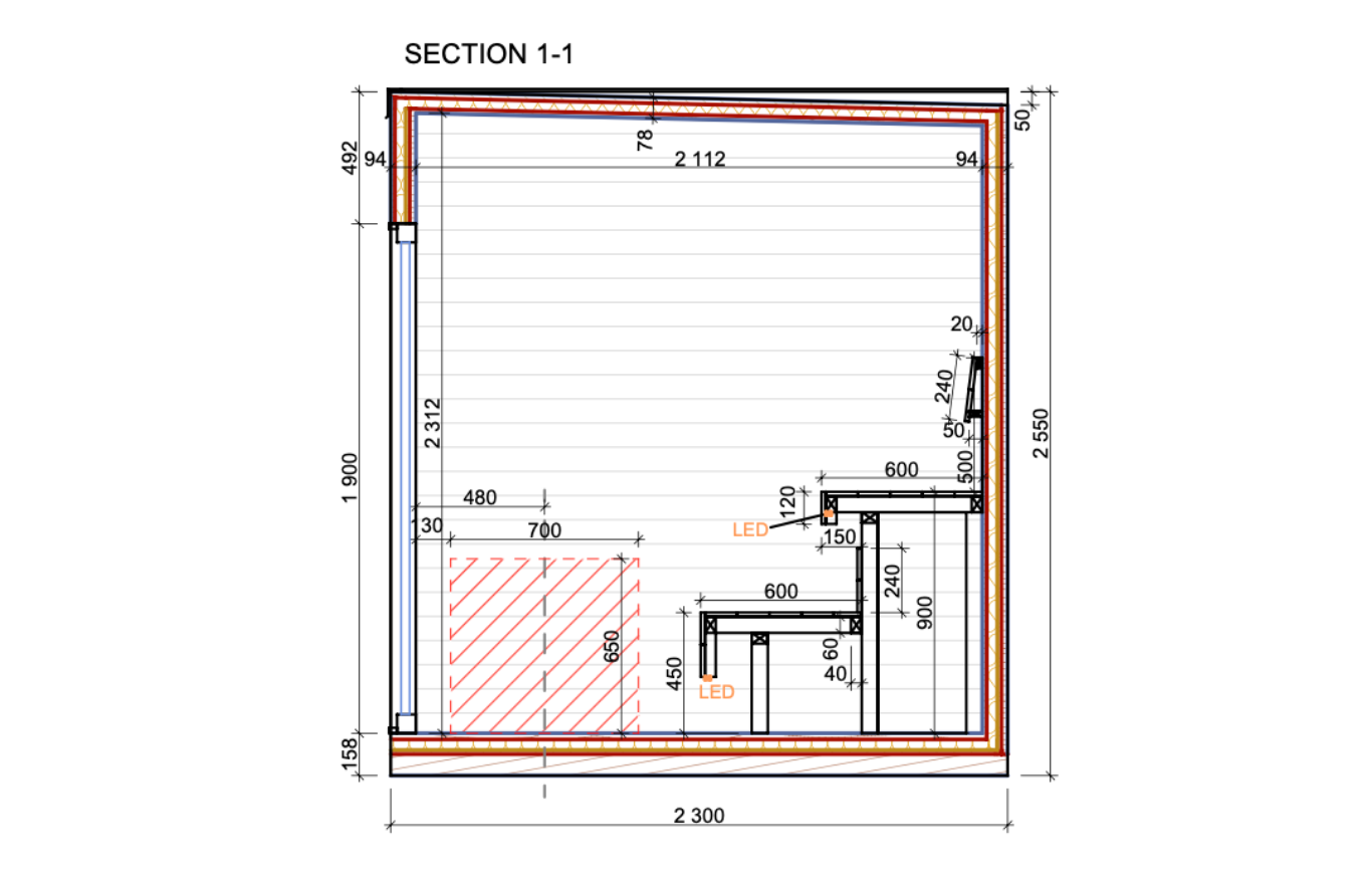 - Sauna 2.3 × 4 m