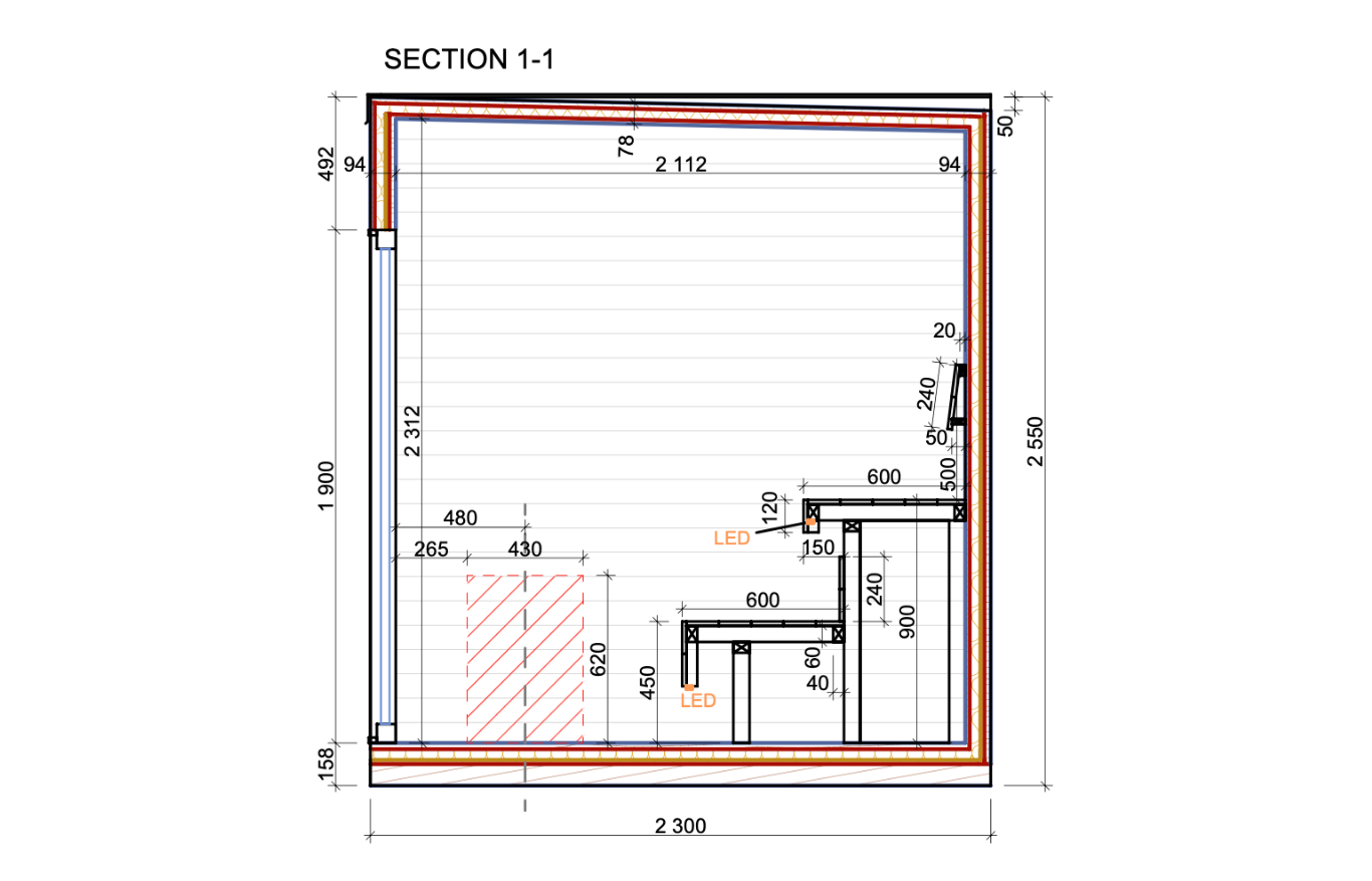 Soft lighting adds a warm, relaxing atmosphere inside the sauna and highlights the beauty of the natural wood without overpowering it.