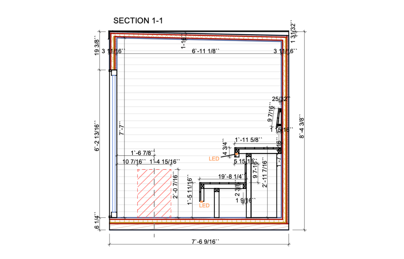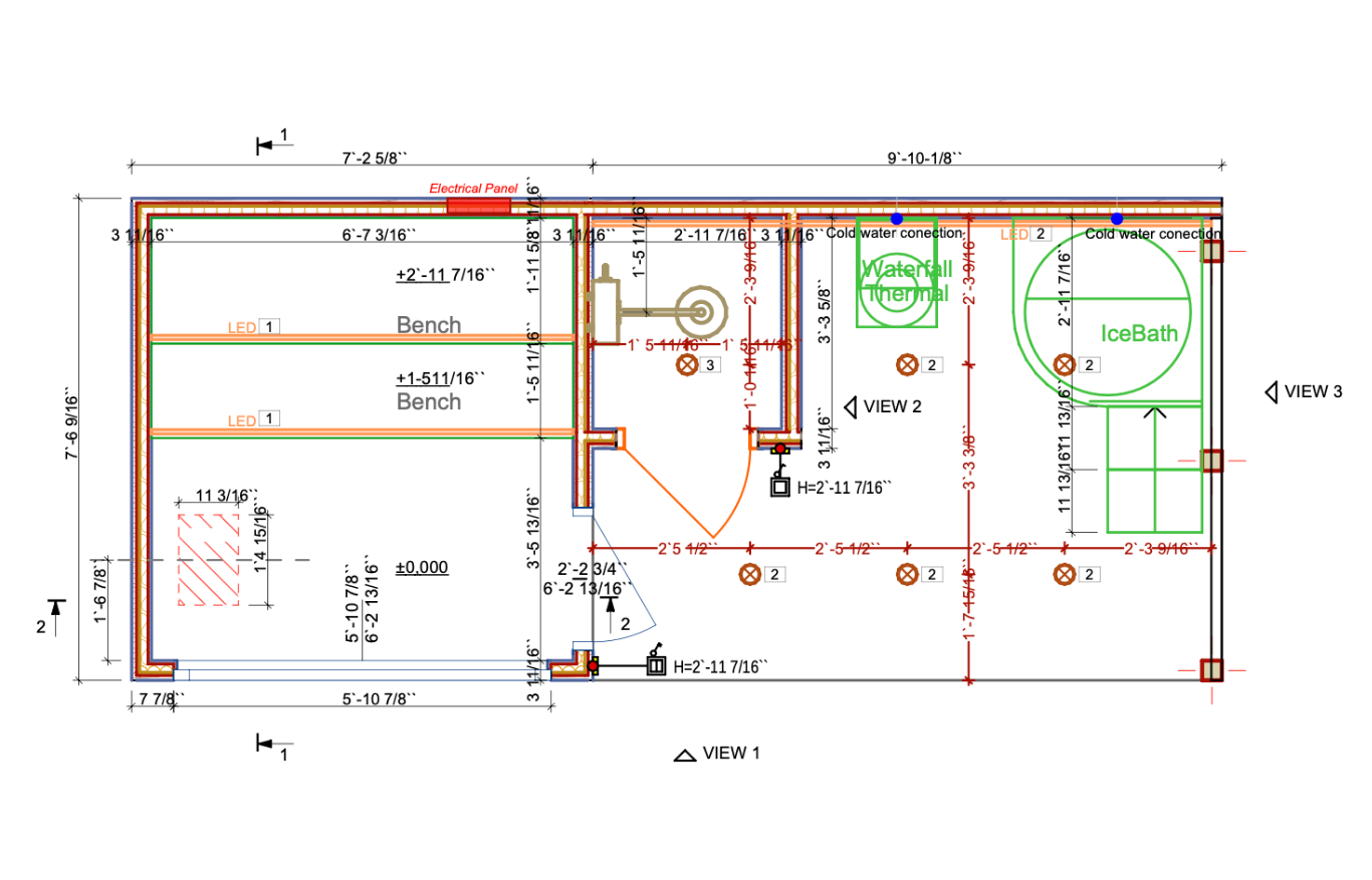 - Sauna 7’3” × 7’7”