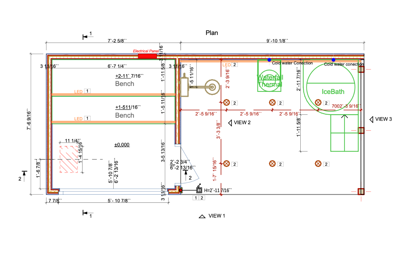 - Sauna 7’3” × 7’7”