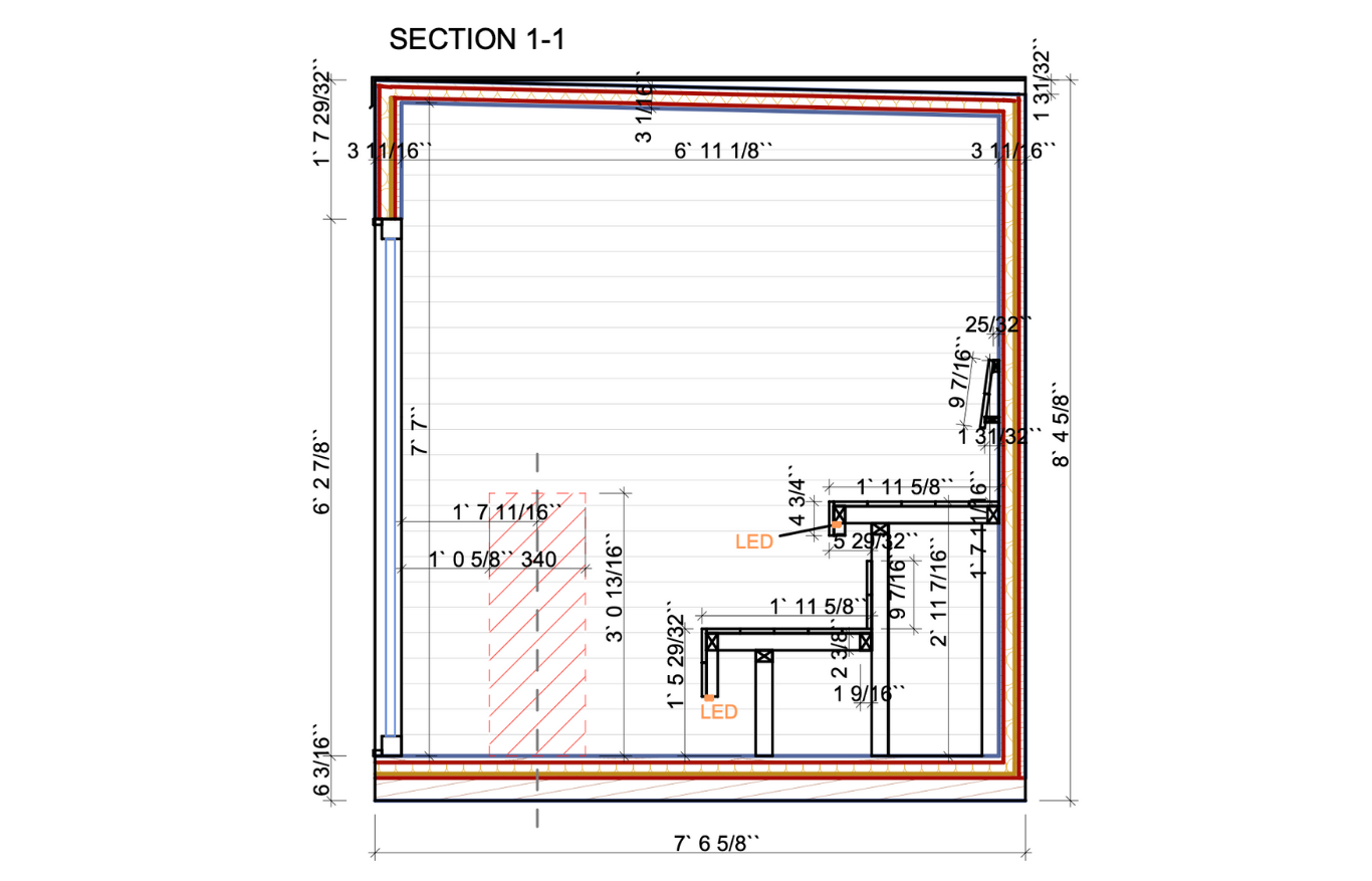 • Timber frame:  1.6 inches with mineral wool insulation (depth: 9.45 inches to fit truck width).